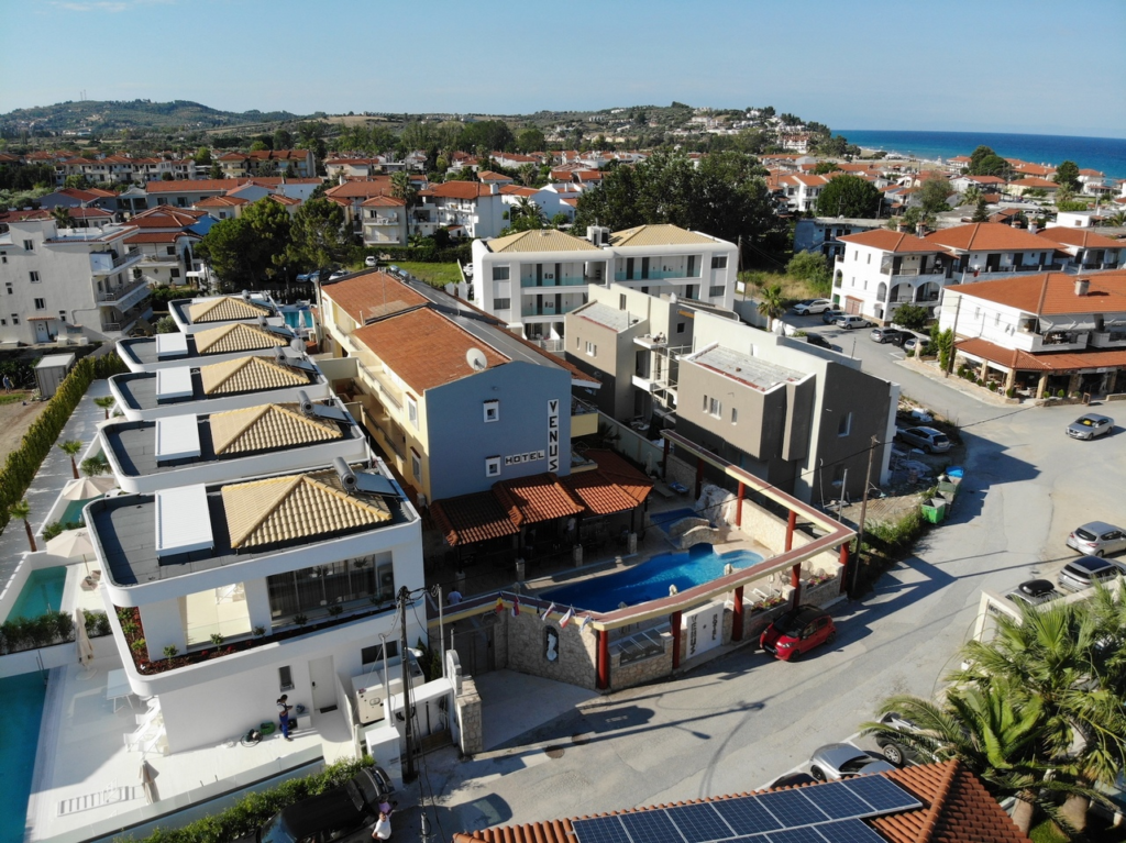 Nestled in the beautiful coastal village of Skala Fourka on the Kassandra Peninsula, Hotel Venus offers a perfect blend of comfort, convenience, and authentic Greek hospitality.Our small, family-oriented aparthotel features just 24 well-appointed rooms, making your stay feel personal and relaxing. Whether you’re looking for a quiet beach getaway, a family holiday, or a romantic escape, Hotel Venus is your ideal base to explore the stunning beaches and attractions of Halkidiki.